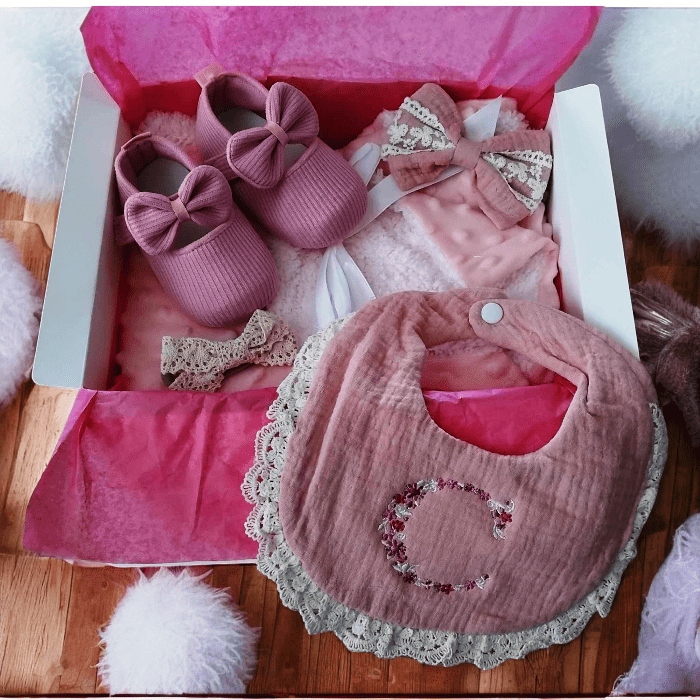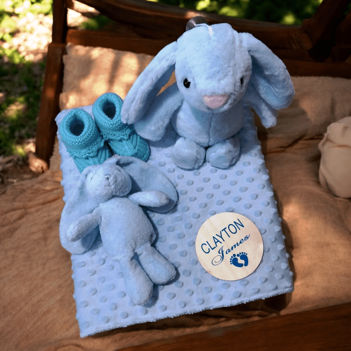 Personalised Embroidered 4pc New Born Baby Boxed Gift Set, Baby Minky Blanket Set, Embroidered Baby Shower Gift