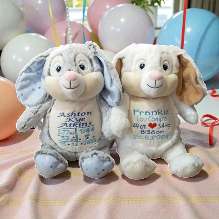 Create a cherished keepsake with our Personalised Embroidered Birth Announcement Cubby Bear.
