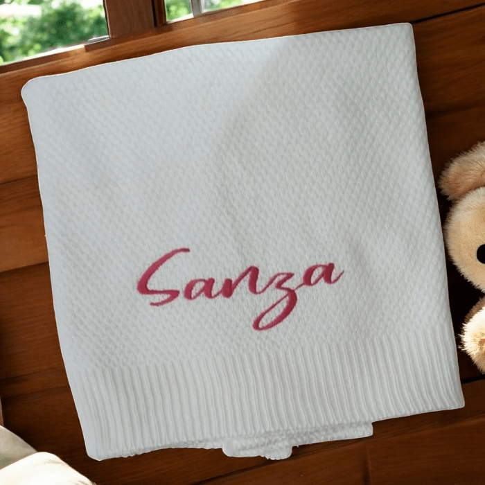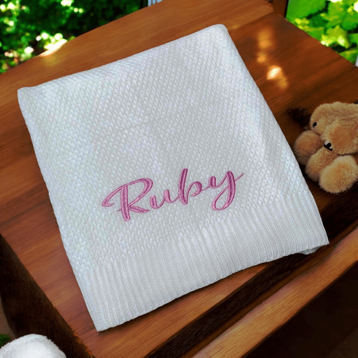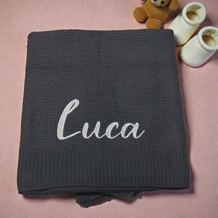 Personalised Embroidered Knit Baby Blanket -Full Sized Knit Cot Blanket – 4 Colours