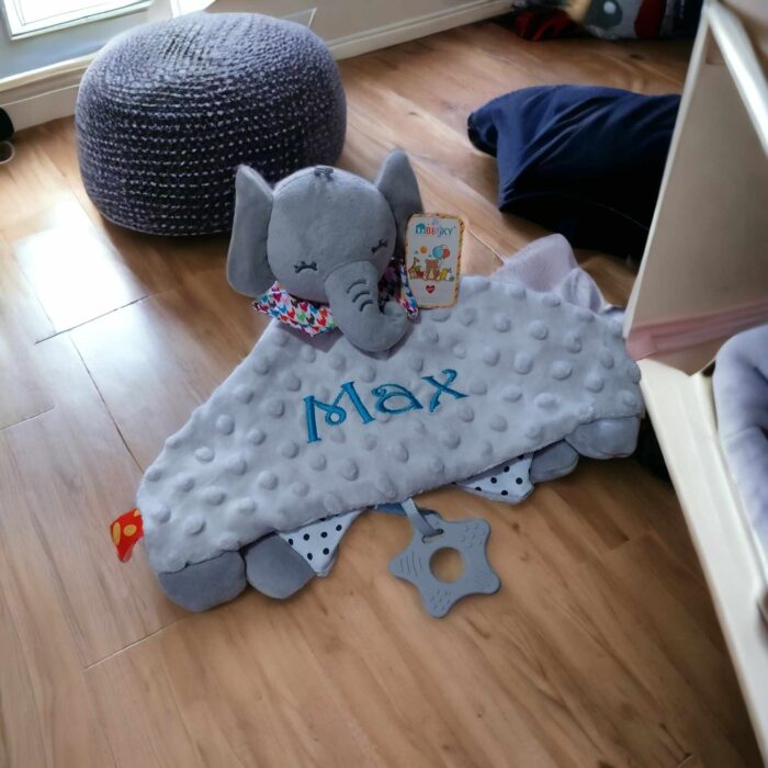 Be the first to review “Personalised Minky Sensory Elephant Comfort Baby Blanket Toy” Cancel reply